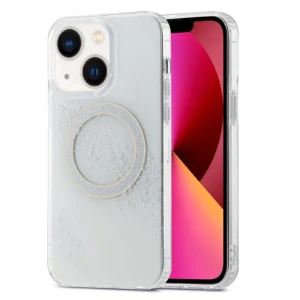 iPhone 13 ümbris MagSafe silikoonist servade ja plastikust tagusega White