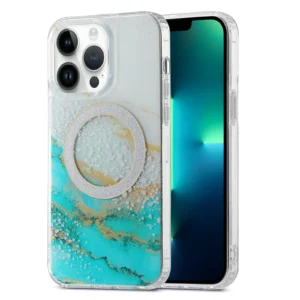 iPhone 13 PRO MAX ümbris MagSafe silikoonist servade ja plastikust tagusega White Green