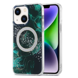 iPhone 15 ümbris MagSafe silikoonist servade ja plastikust tagusega White Green
