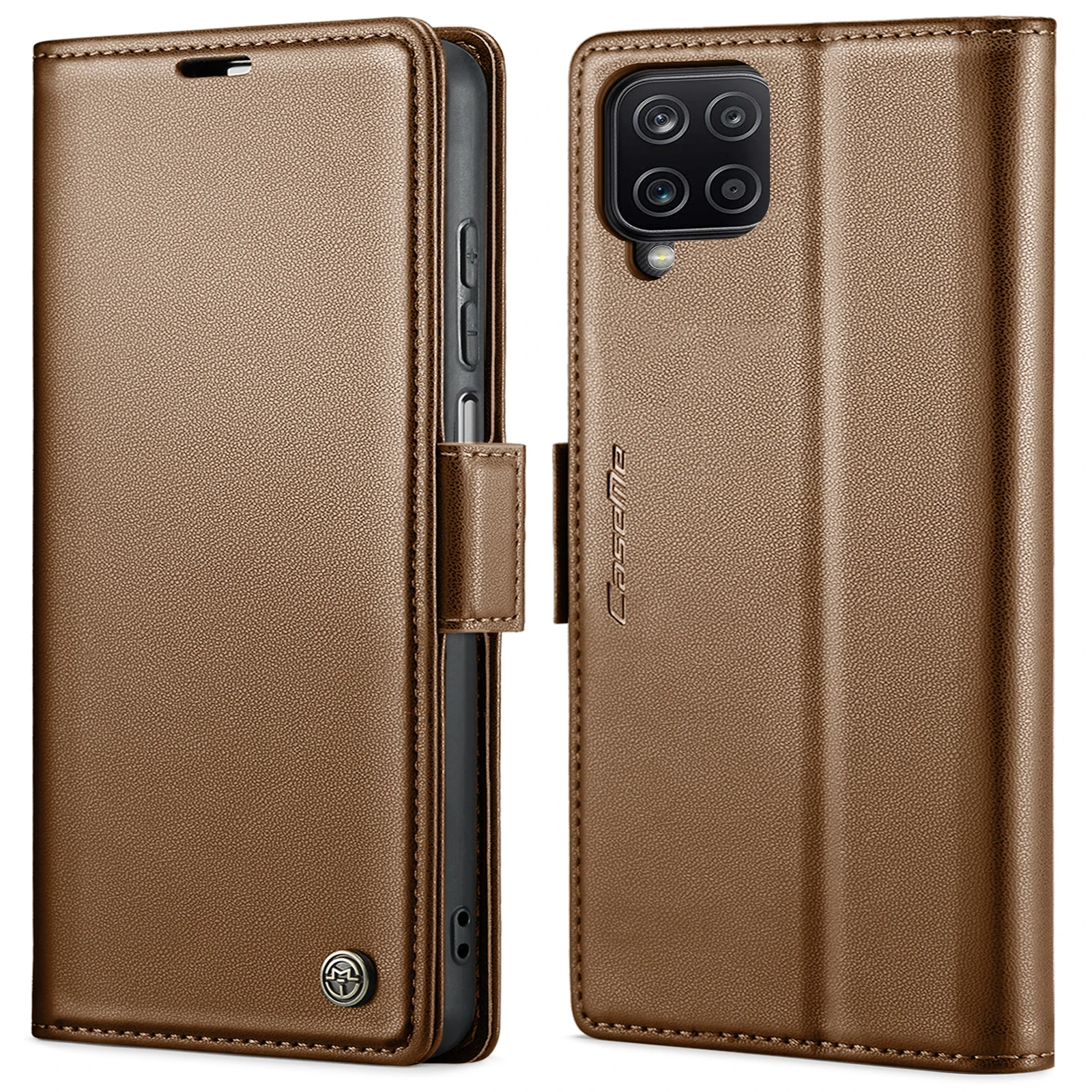 Samsung Galaxy A12 raamatkaaned kunstnahast RFID kaartide kaitsega – Pruun