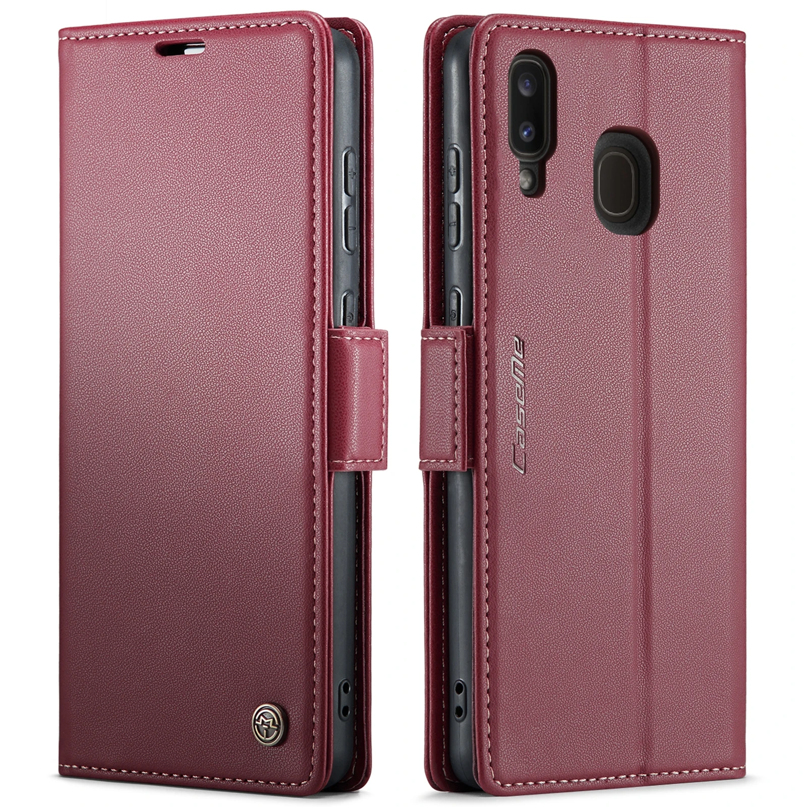 Samsung Galaxy A40 raamatkaaned kunstnahast RFID kaartide kaitsega – Veinipunane
