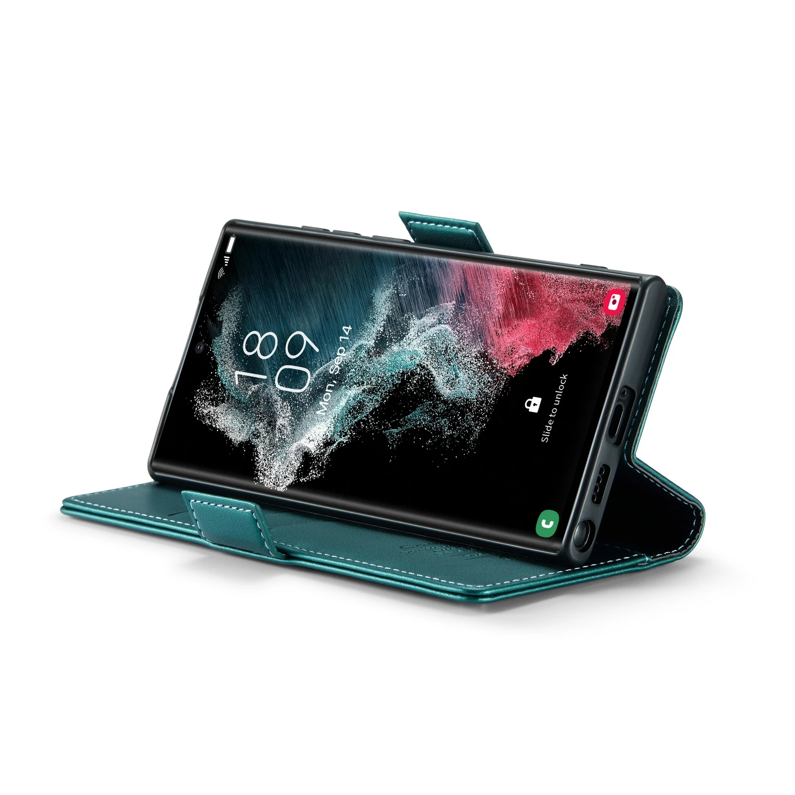 Samsung Galaxy S22 ULTRA raamatkaaned kunstnahast RFID kaartide kaitsega – Pärlsinine