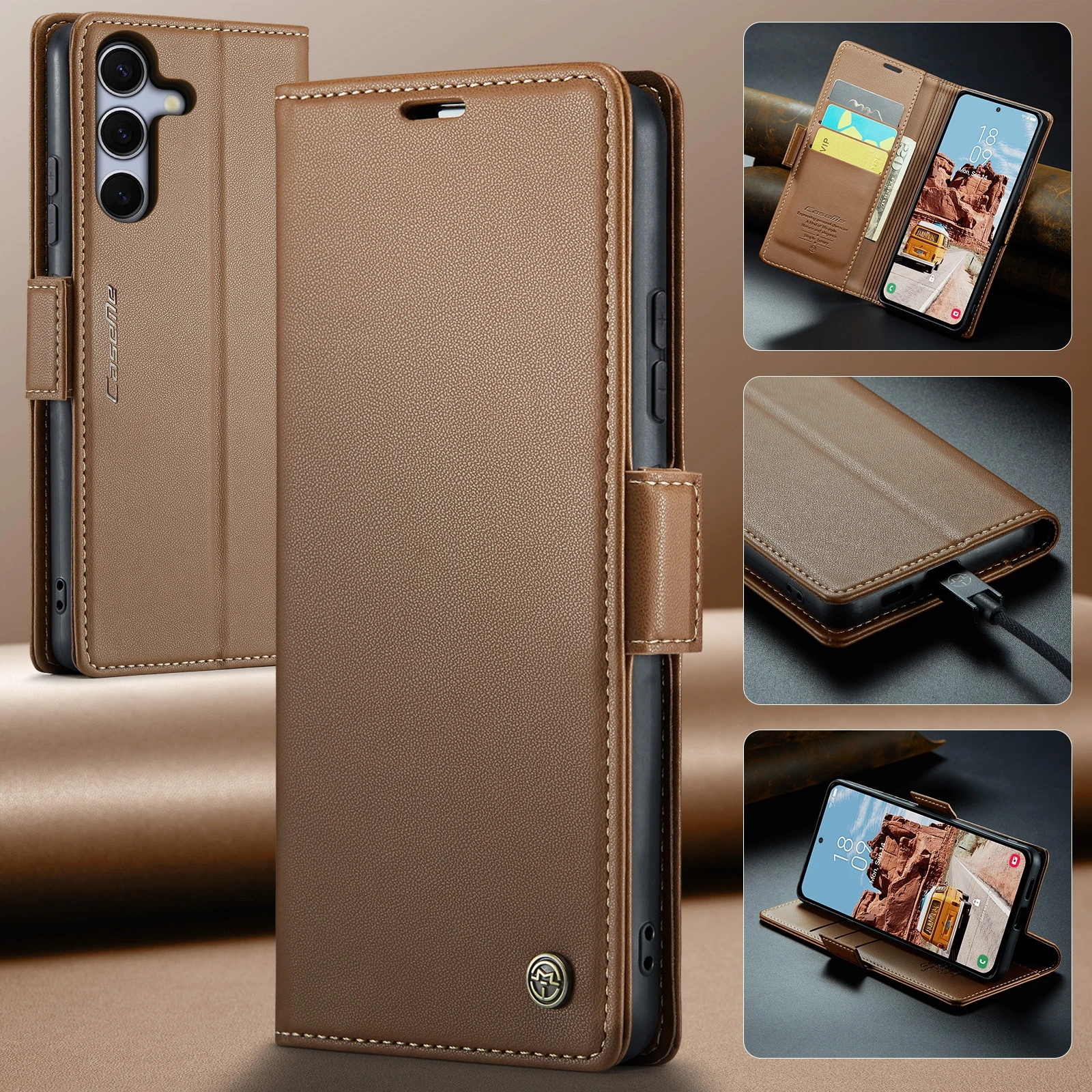 Samsung Galaxy S25+ PLUS raamatkaaned kunstnahast RFID kaartide kaitsega – Pruun
