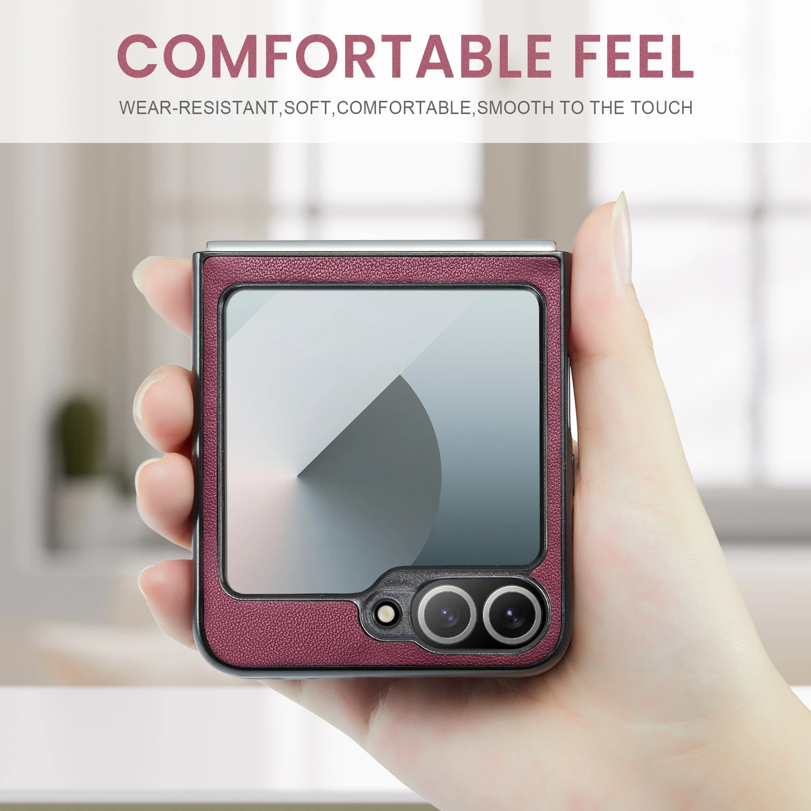 Samsung Galaxy Z Flip6 / Flip7 FE raamatkaaned kunstnahast RFID kaartide kaitsega – Veinipunane