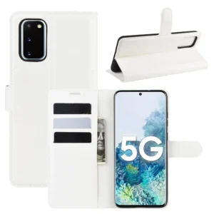 Samsung S20 FE raamatkaaned kunstnahast sularaha ja kaarditaskutega - Valge