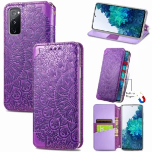 Samsung S20 FE raamatkaaned Mandala kaarditaskute ja rahataskuga - Lilla