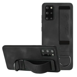Samsung S20 FE ümbris käehoidjaga silikoonist raamiga ja kunstnahast kattega - Must