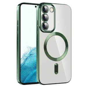 Samsung S22 ümbris kaarditaskutega silikoonist raamiga ja kunstnahk kattega – Must