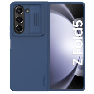 Samsung Z Fold 5 kaaned Nillkin Qin Camshield silikoonist ja plastikust sinine